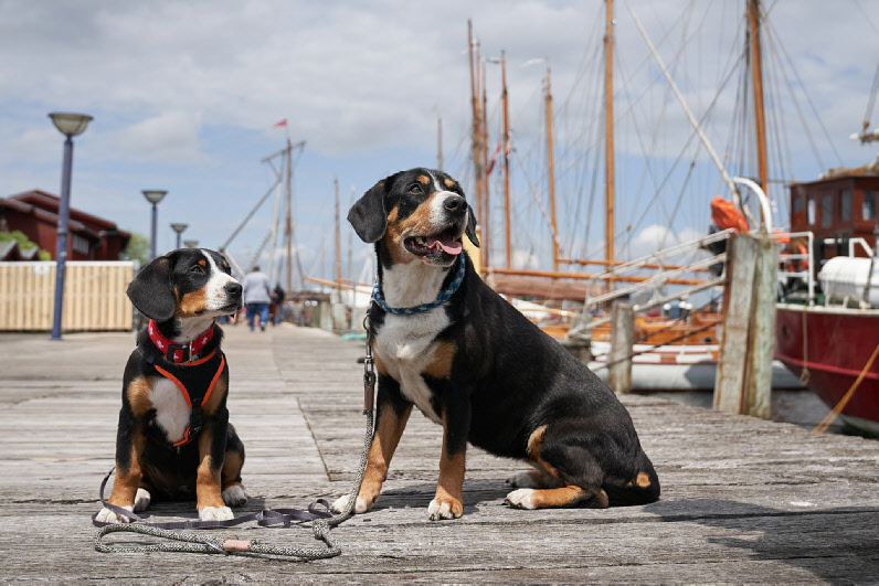 Clementine ist eine Tochter unserer Lucie - eine sehr liebe, anhängliche Hündin- aber mit einem Temperament, das im krassen Gegensatz zu ihrer tiefenentspannten Mutter steht. Clementine gehört zu den Entlebuchern, die nur schwer Ruhe finden und die man immer wieder davon überzeugen muss, einen Gang runterzuschalten. Unsere Tine geniesst das Leben am liebsten am Strand oder noch besser im Wasser. Das ist ihr ganz grosses Glück: Schwimmen, tauchen, aus dem Wasser apportieren. Sehr wichtig sind ihr auch Spielen und abendliche Kuschelstunden mit ihren Menschen. Wie alle unsere Entlebucher ist Clementine gerne überall dabei und bemüht, alles richtig zu machen.